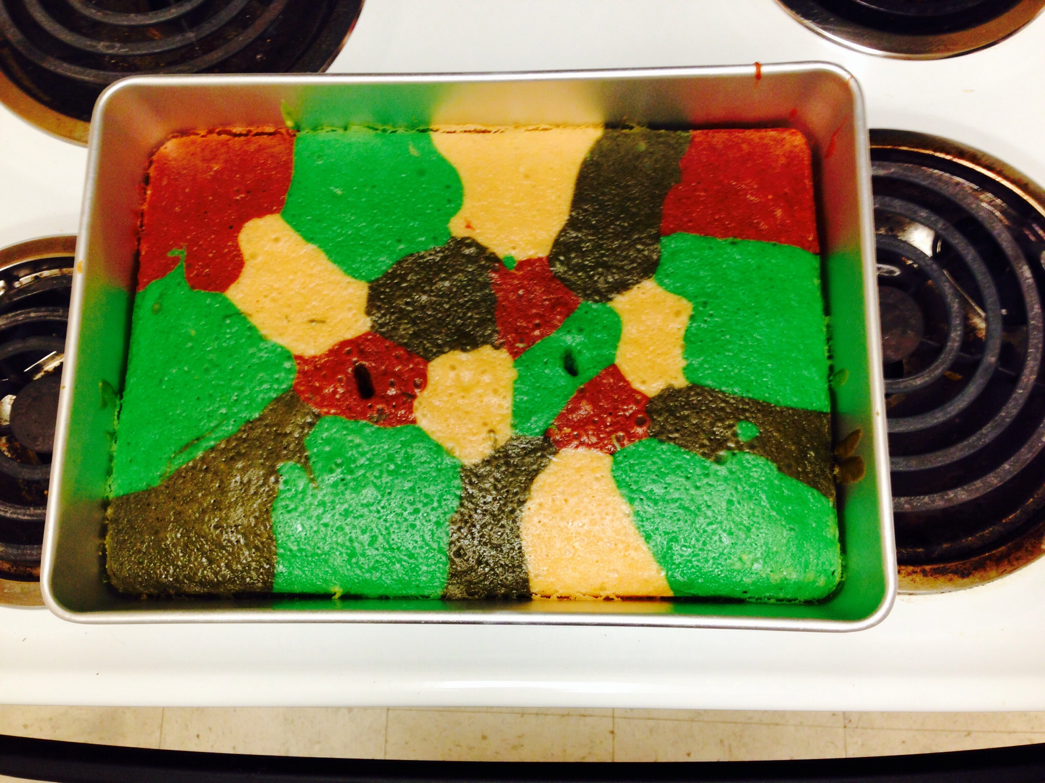 Anyways, then came the cake. I gathered my supplies and planned everything out this morning. It was going to be a camo cake, which entails a lot of food dye and effort. One and a half hours later I was beaming over my new creation. As I was pulling the cake out of the over, I just so happened to look to my left. A carton of eggs. Now this might not seem strange to you, but you see, the eggs were still in a Walmart bag. Unopened. So, I now have a fabulously egg-less camo cake that probably tastes like cardboard. I called my mom and complained for a while, then decided to just decorate it anyways and tell him not to eat it. It didn’t take long for me to realize that the icing writers I had purchased were gel. Writing on chocolate icing with gel writers means every color looks black, in case you didn’t know. So now, not only do I have a very unappetizing cake, but the decorations look equally as pitiful. It was in that moment that I realized nothing went as planned for Jared’s birthday. I didn’t do anything right.