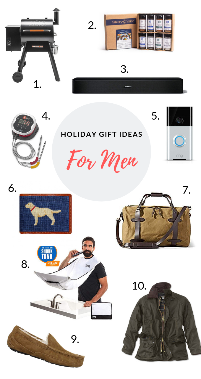 Holiday Gift Ideas for Men November 20, 2018Categories Marriagegifts for men, holiday gift ideasLeave a Comment on Holiday Gift Ideas for Men Traeger Renegade Pro Wood Pellet Grill Savory Spice Kit Bose Solo 5 TV Sound System Weber iGrill 2 Thermometer Ring Video Doorbell 2 Smathers and Branson Bifold Wallet Filson Medium Duffle Bag BEARD KING – The Official Beard Bib UGG Men’s Ascot Slipper Barbour Classic Beaufort Jacket Share this: Share on Threads (Opens in new window) Threads Share on Facebook (Opens in new window) Facebook Share on Pinterest (Opens in new window) Pinterest Email a link to a friend (Opens in new window) Email Share on X (Opens in new window) X More Share on X (Opens in new window) X Print (Opens in new window) Print Share on Tumblr (Opens in new window) Tumblr Like Loading... Published by carolinebroadbent View all posts by carolinebroadbent